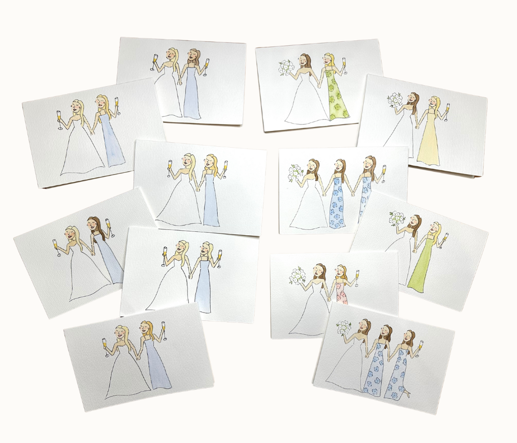 Custom watercolor bridesmaid portraits on greeting cards for your bridesmaid proposals or day-of notes!